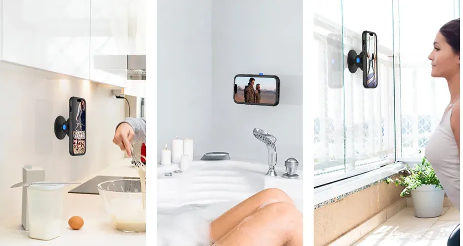 "Effortlessly clear the mess on kitchen counters, bathroom sinks, or workbenches with the Sportlink Universal Quick Mount wall mount. Highly recommend using it in tandem with the Sportlink waterproof case, you'll never have to worry about your phone getting wet again." Check it out now!